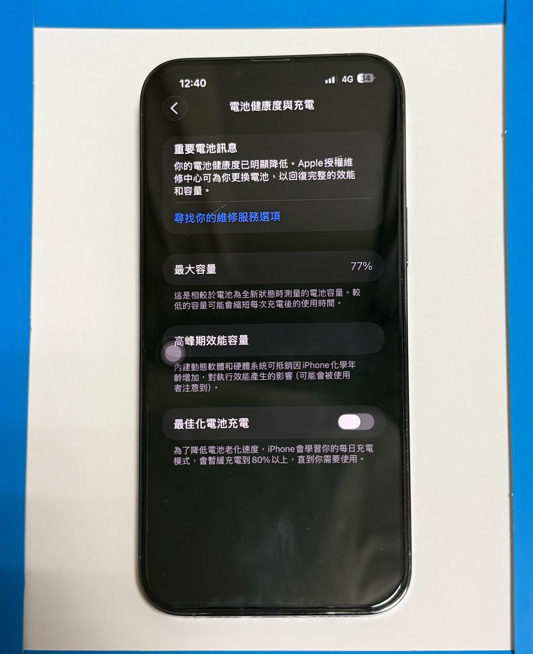 護貼(有裂痕)、電池77%