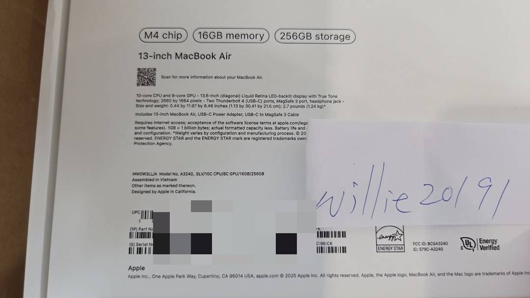 1. Macbook Air 16G/256G M4 銀色