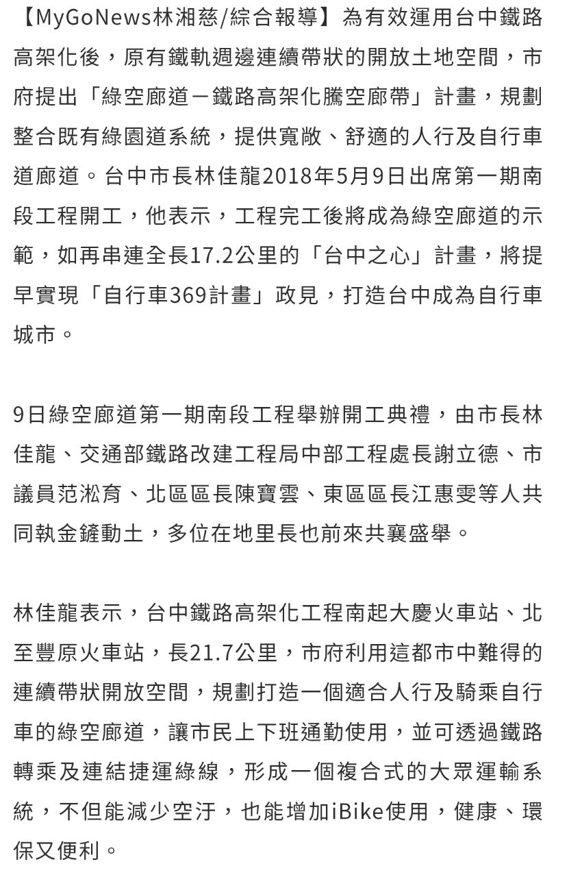 推 YummyYummy: 綠空廊道是林佳龍的政績 這個帳號是沒 118.163.218.49 02/13 18:25