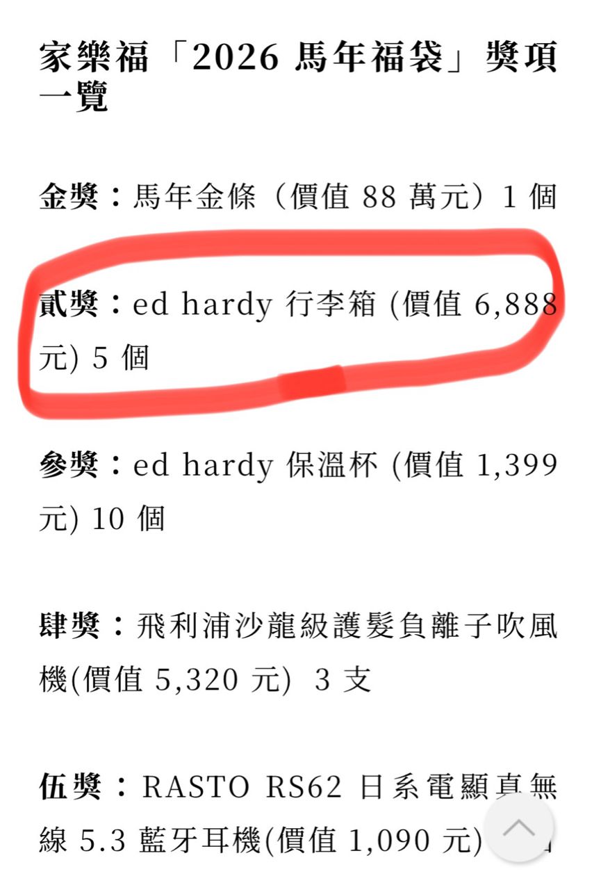 備 註:家樂福消費中獎,價值6888元(官網上寫的)