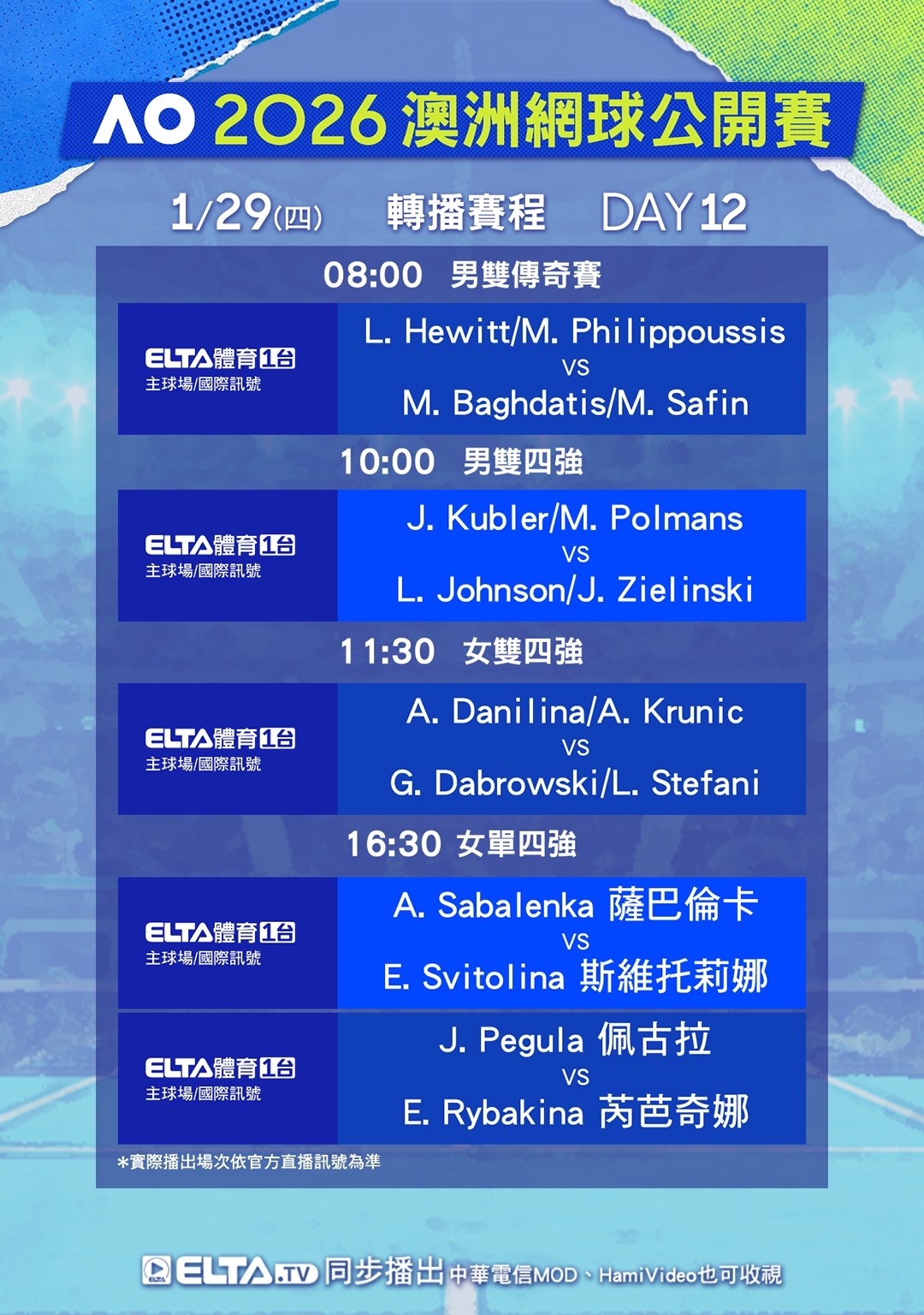標題[情報] 澳網 1/29賽程