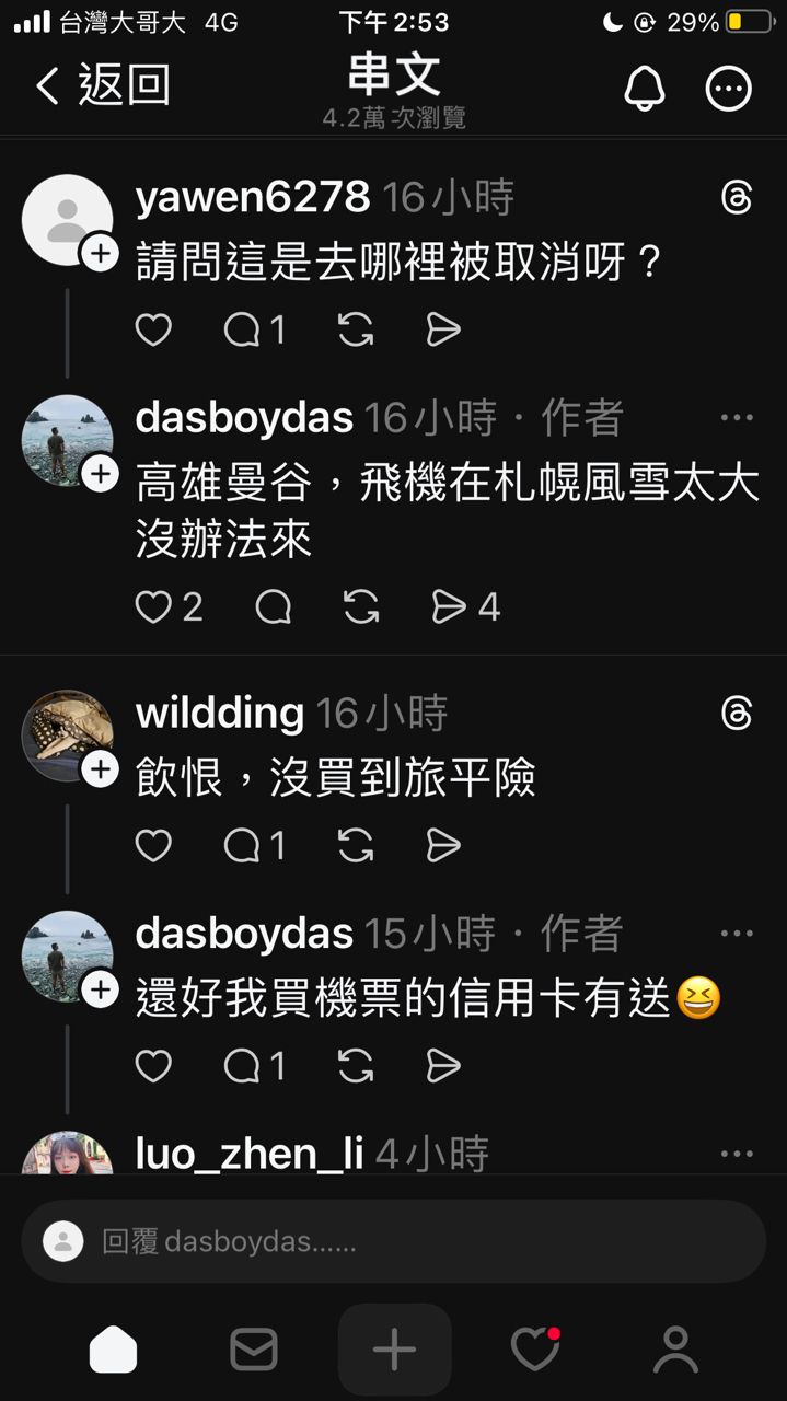 → analysis5566: 脆上面有人高雄飛曼谷被取消 12/13 14:53