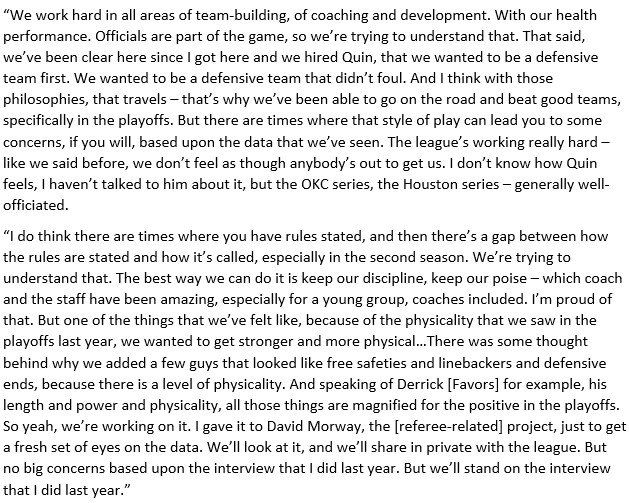 → Jazz1336: 他說雖然有些球員一下上場一下冷凍,但心態都以球隊為先 05/10 00:42
