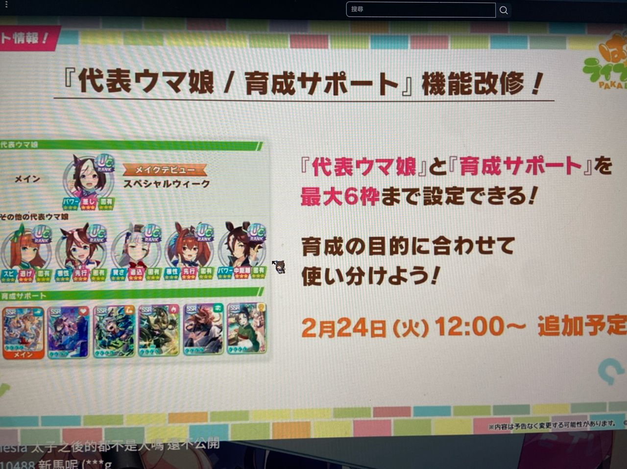 → s955120: 馬娘上線日在馬娘世界內變節日了 02/22 19:11