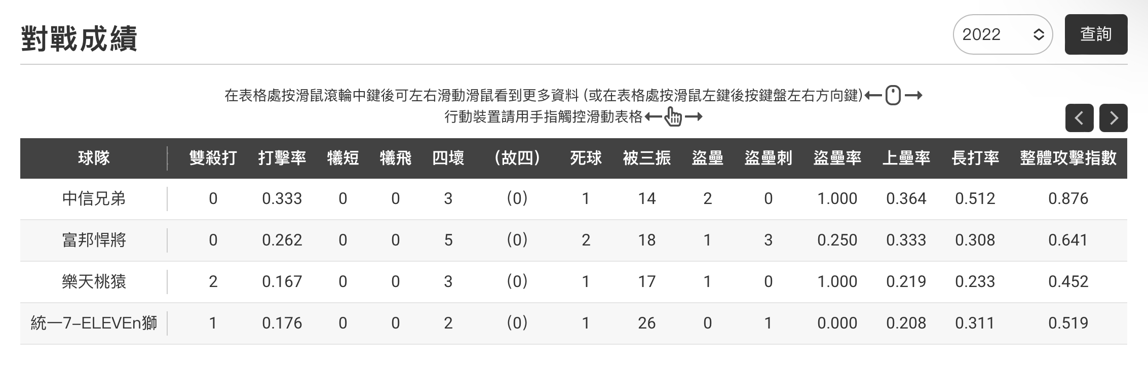 0.43、鄭凱文0.95;林立在7月打點16分、得分16分都是打者最多,打擊率0.365、全壘打
