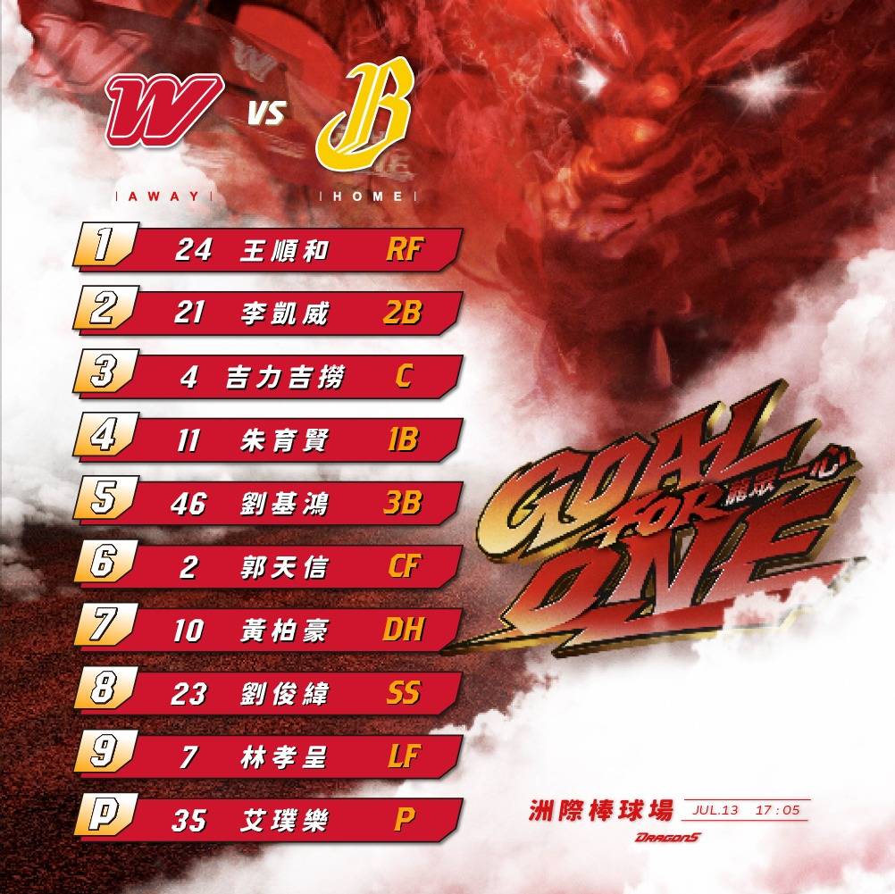 推 ouo666ouo: 抽籤打線好棒棒 07/13 16:40