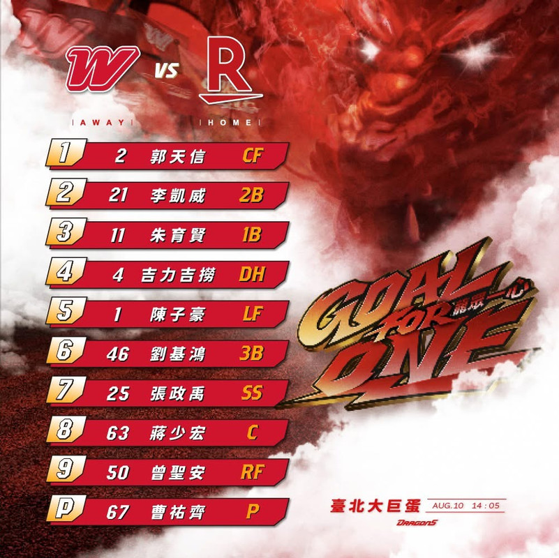 推 ganshins: 先發打線沒動,小帥加油! 08/10 13:25