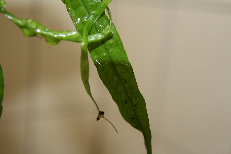 無扁捲,無絲狀、無絨毛。老葉有少量黑毛、綠斑。缸中有少量藍綠藻。