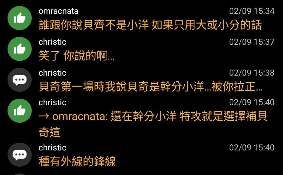 → omracnata : 類在幹分小洋 你要嘛當下問我何謂幹分小洋 為何貝齊 02/09 16:05