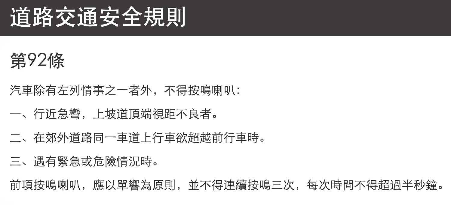 但我要強調的是,按喇叭有影響其他用路人的安全嗎?