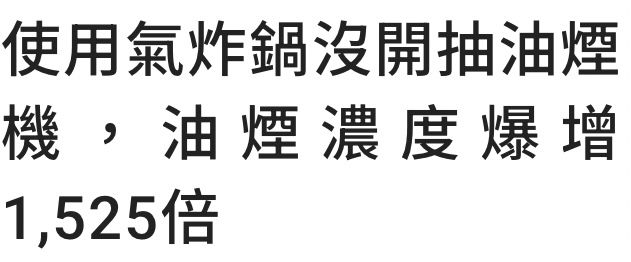 → marra: 今天中午試了把氣炸鍋放抽油煙機正下方,果然油煙少很多 12/13 12:52