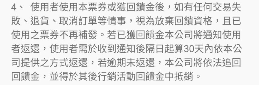 推 brokeback : 剛剛收到五張20券,發現有明文規定,不能退貨套現了 12/16 16:17