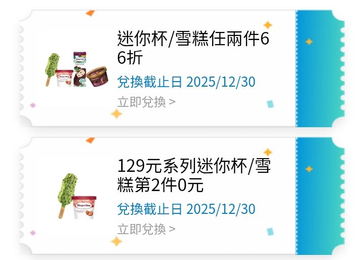 A. 迷你杯/雪糕 任兩件66折 (剩1張)