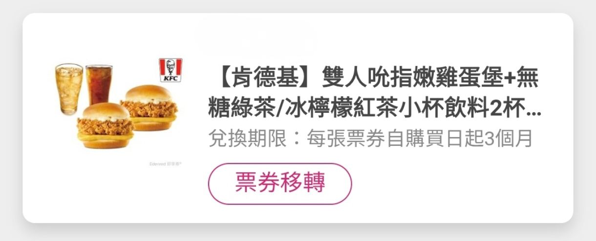 KFC 吮指嫩雞蛋堡x1+小飲x1 51元 有2