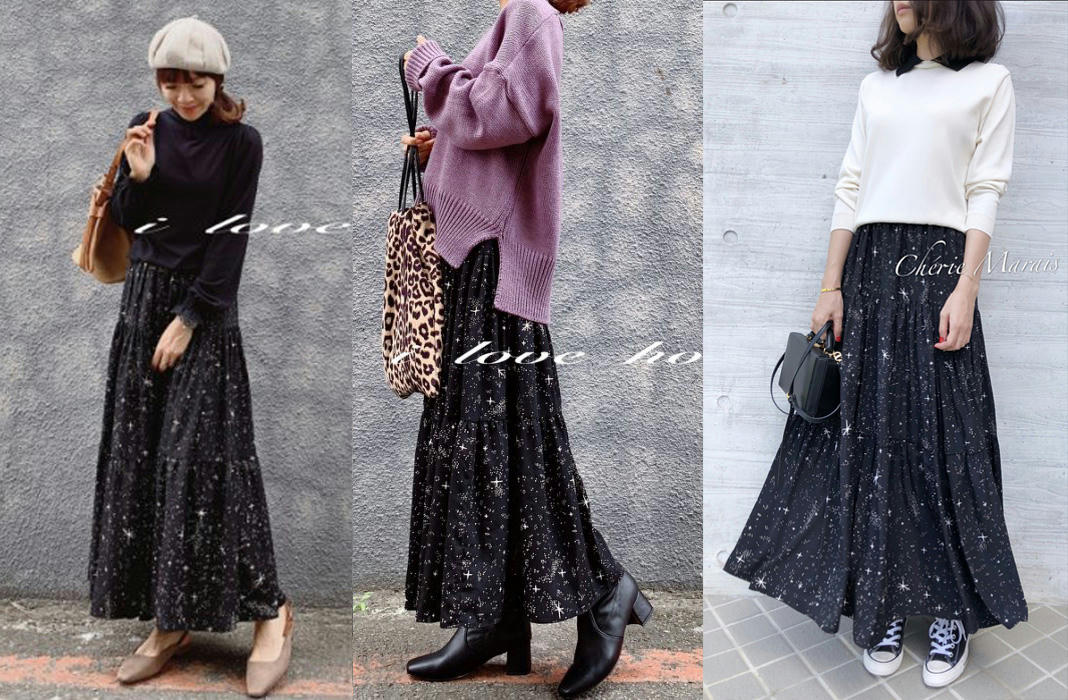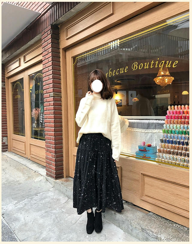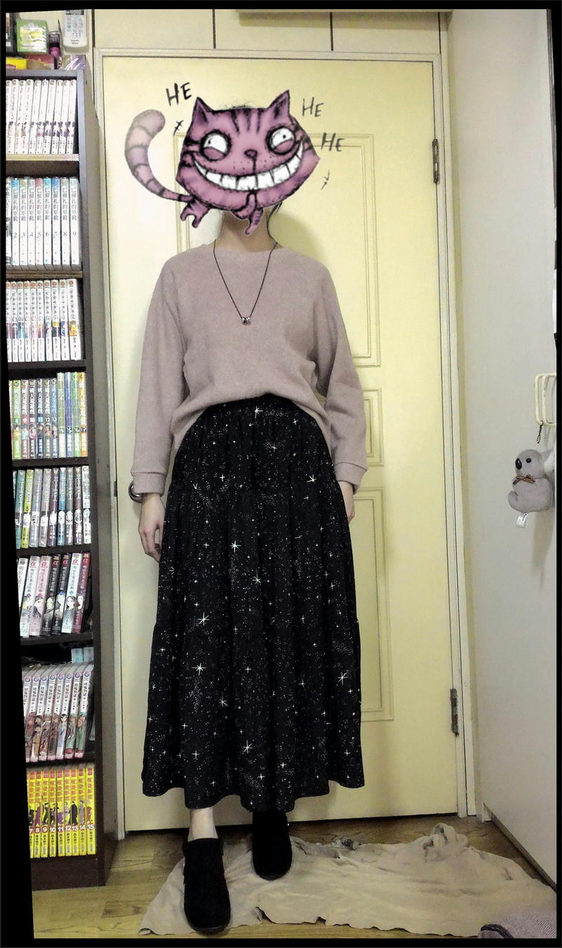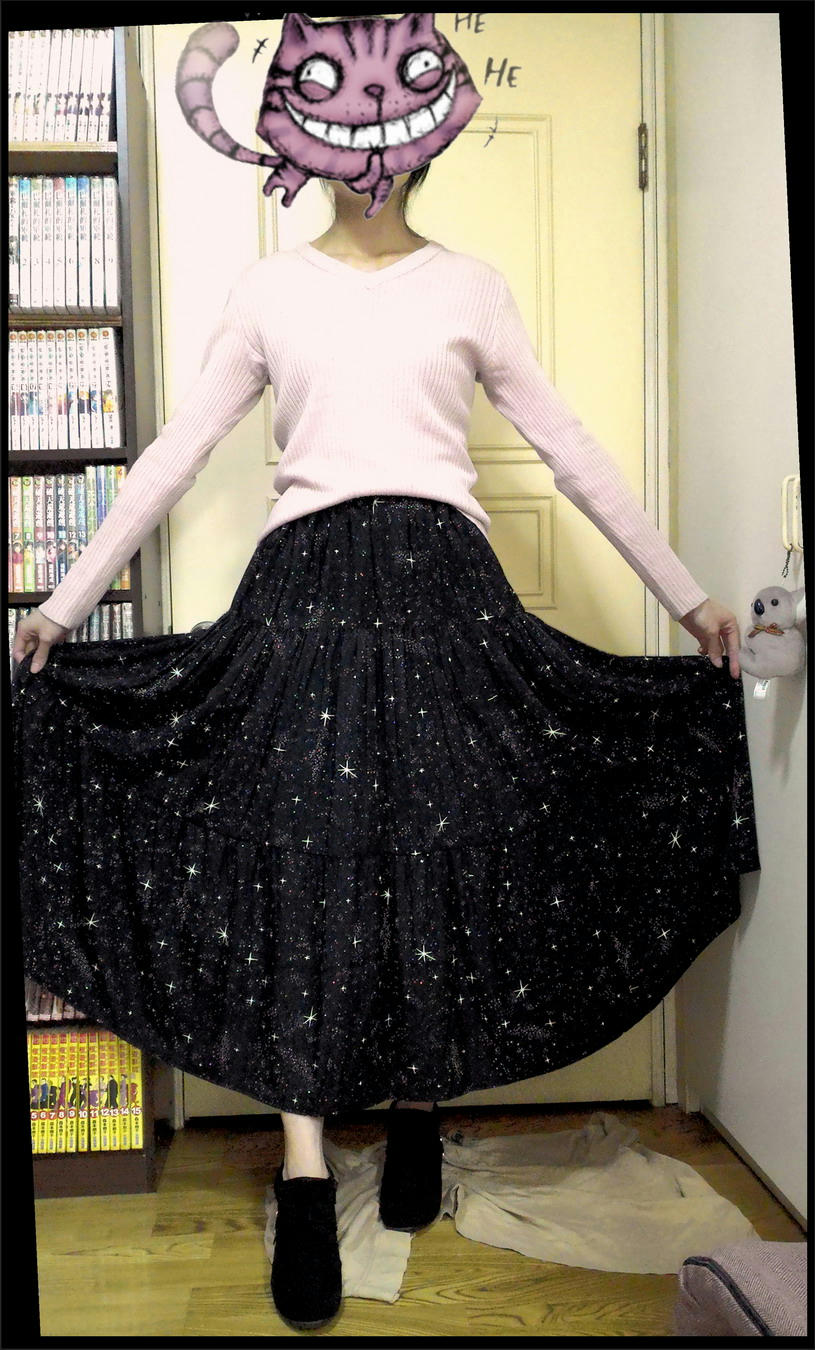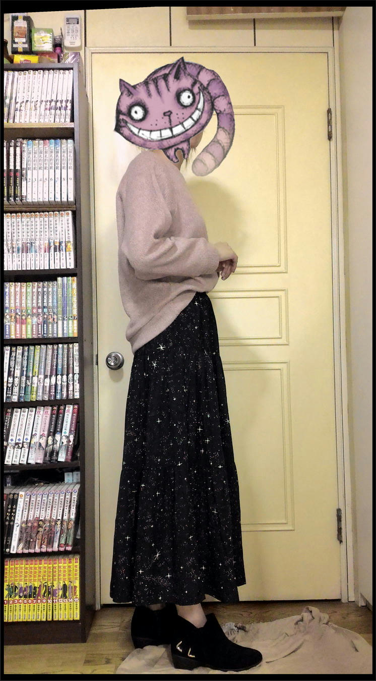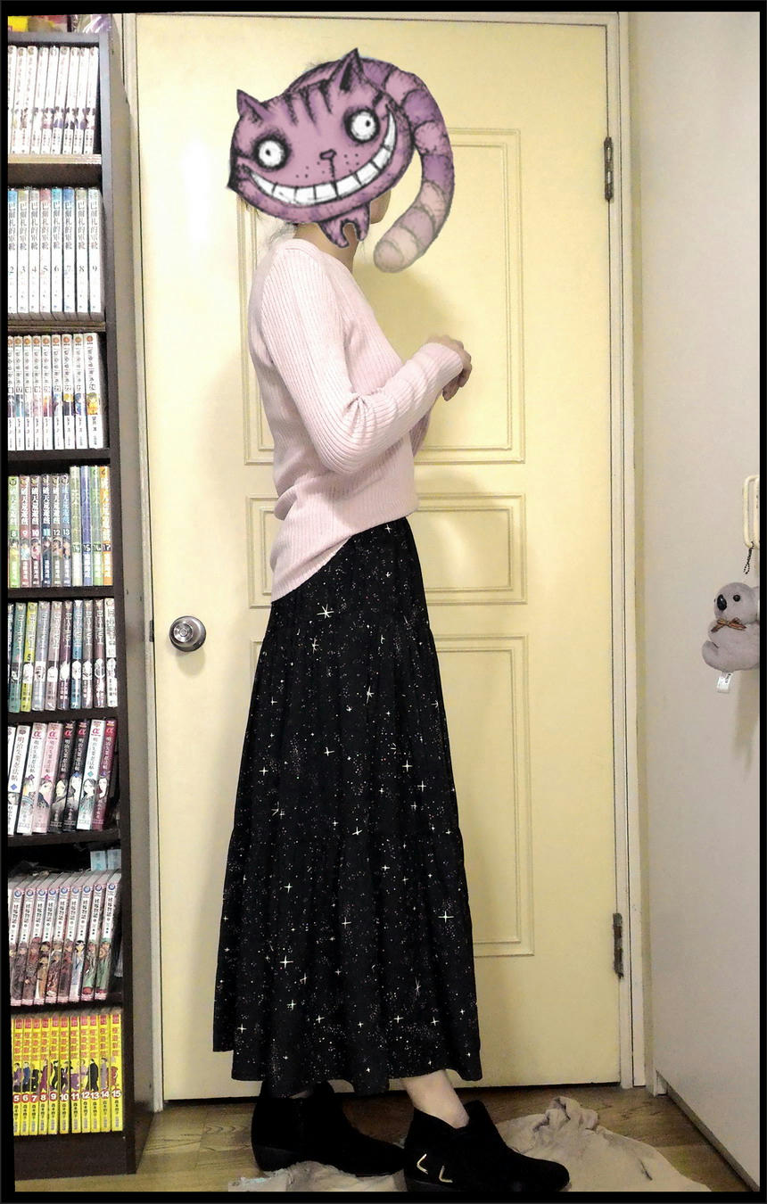 158這件大概到腳踝了吧@@ 星空裙在各賣場 搭配的風格都差蠻多的,