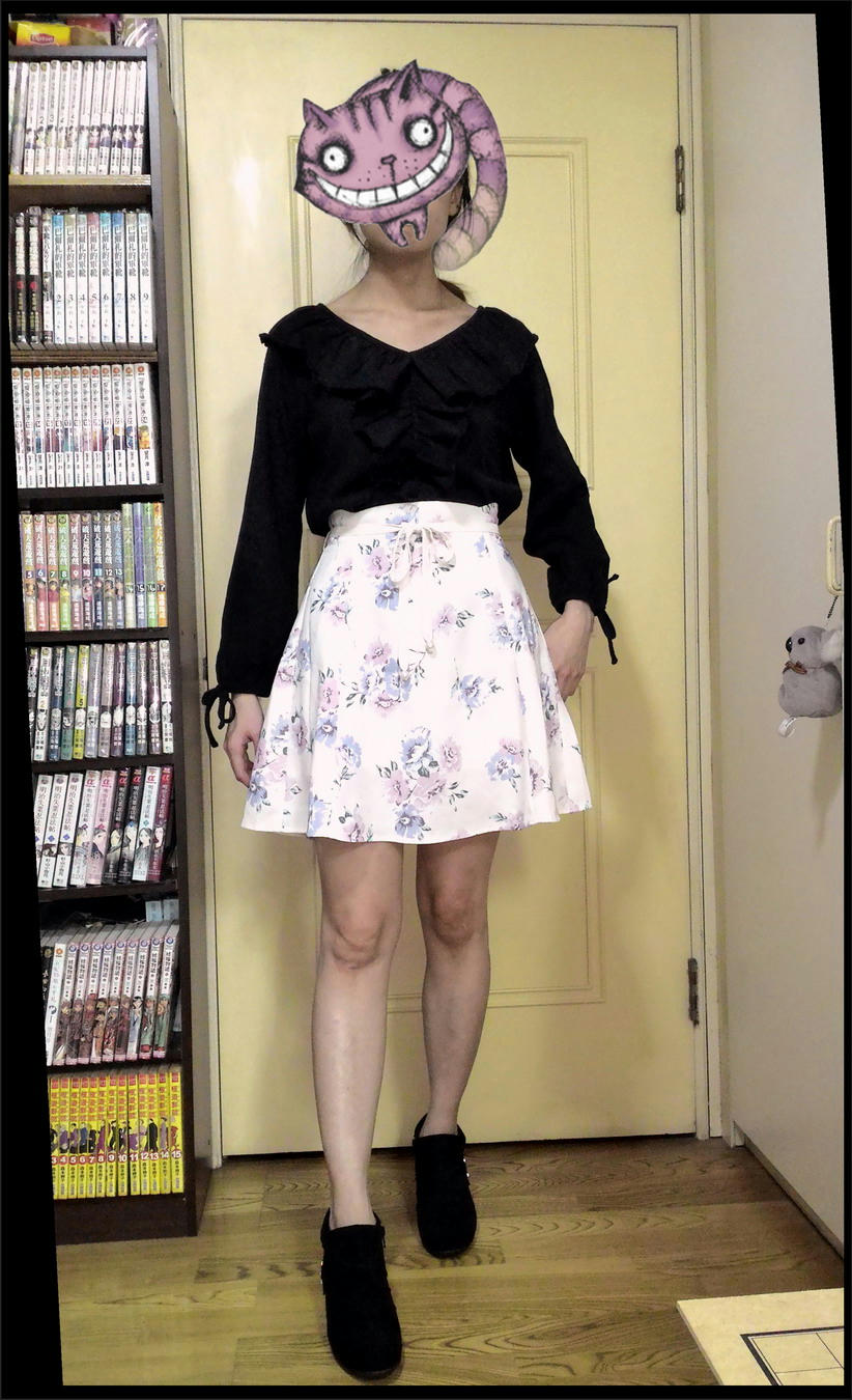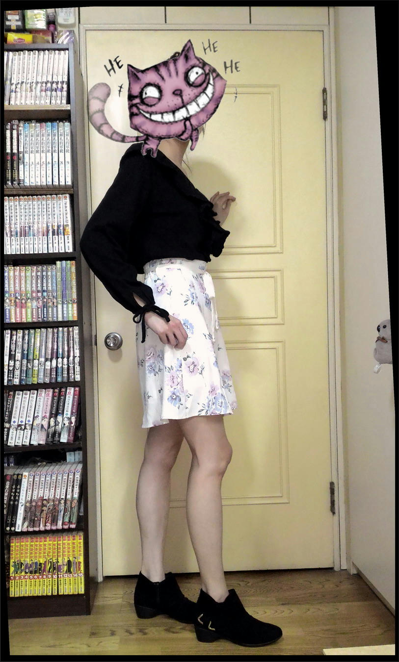 如網誌有貼的 裸腿穿黑靴的側面(這張是要示範 這件花裙的小腹問題XD)