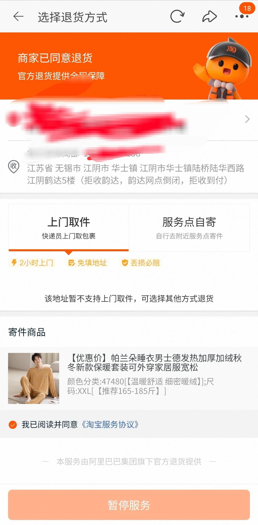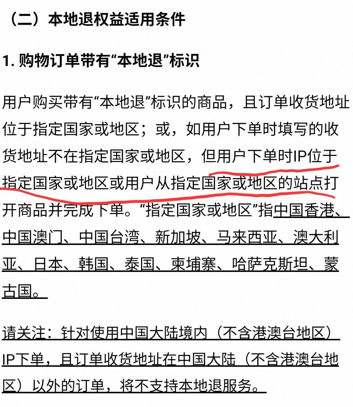 之前正常的本地退就直接收走、而這次(如截圖)則是看到收件地址直接是大陸商家