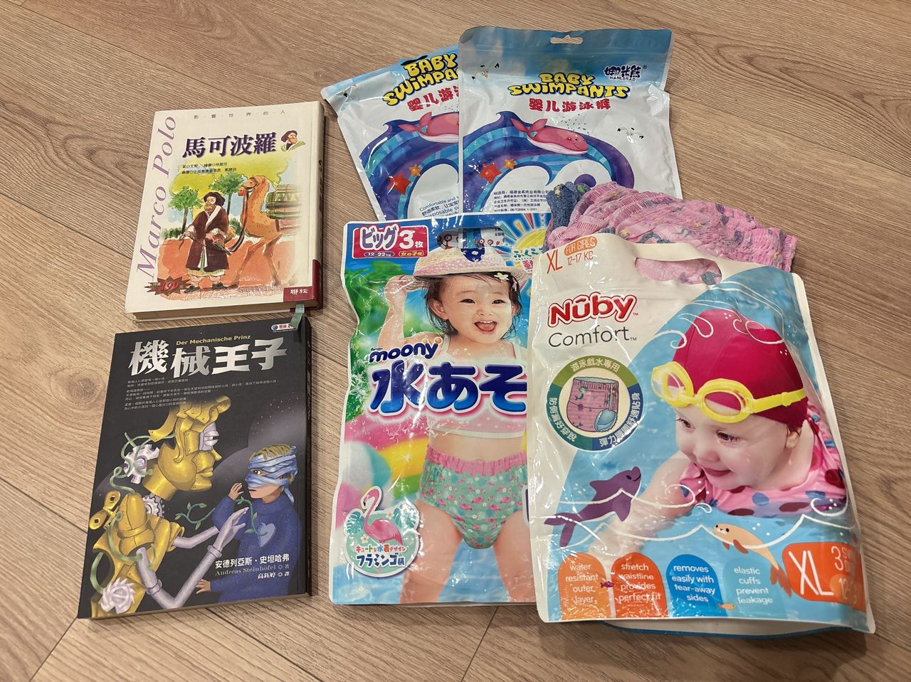 過期但保存良好戲水尿布與童書