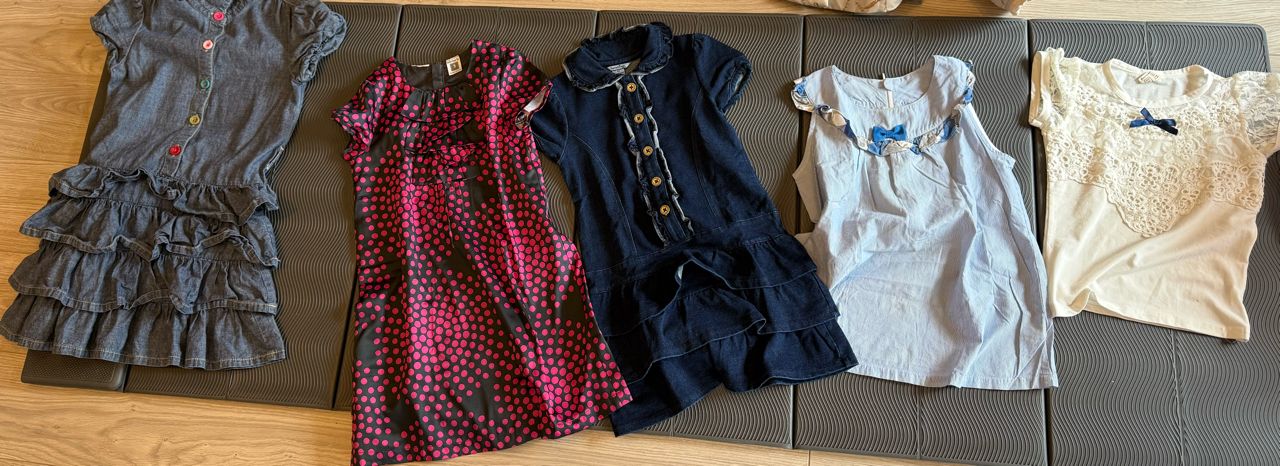最左邊的牛仔洋裝可能可以穿到七歲