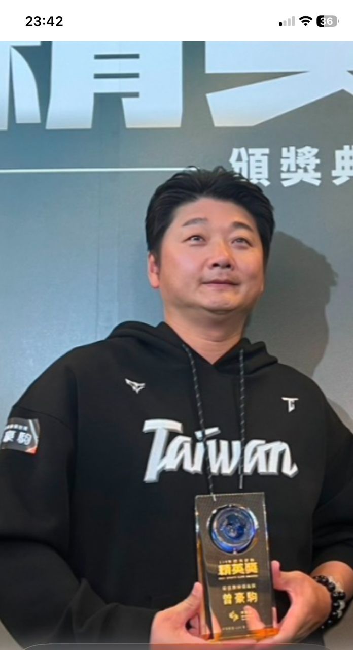 今天看報紙時看到曾豪駒領獎的照片,發現他的頭髮跟去年12強奪冠時差很多,現在的髮