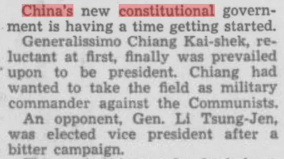 1946年,台灣人派出制憲代表 (該制憲代表最初由地方普選而來),