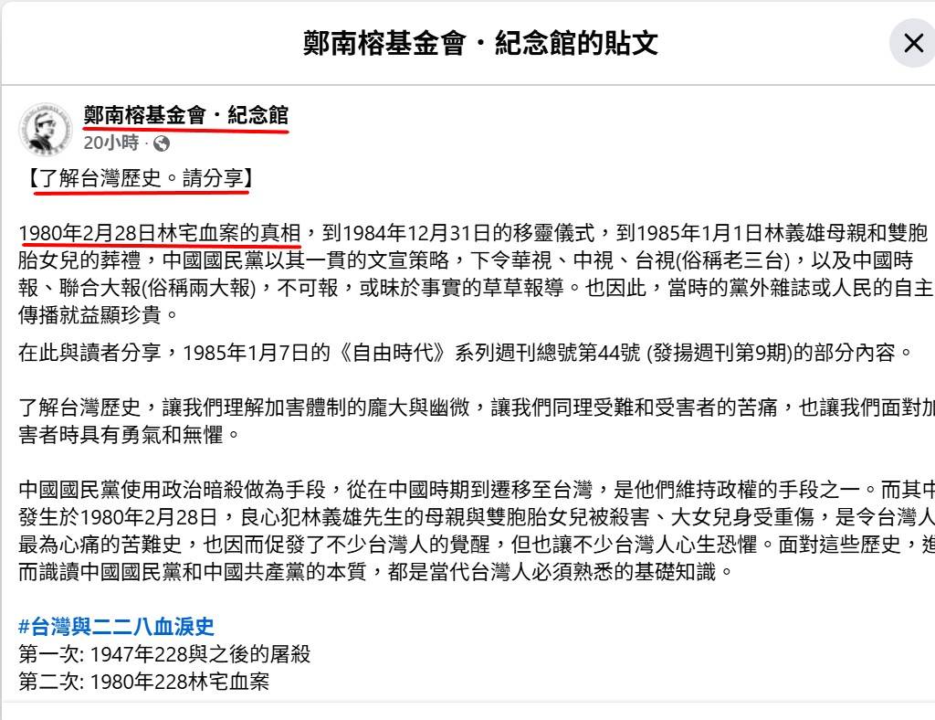 鄭南榕基金會.紀念館:【了解台灣歷史。請分享】 1980年2月28日林宅血案的真相...