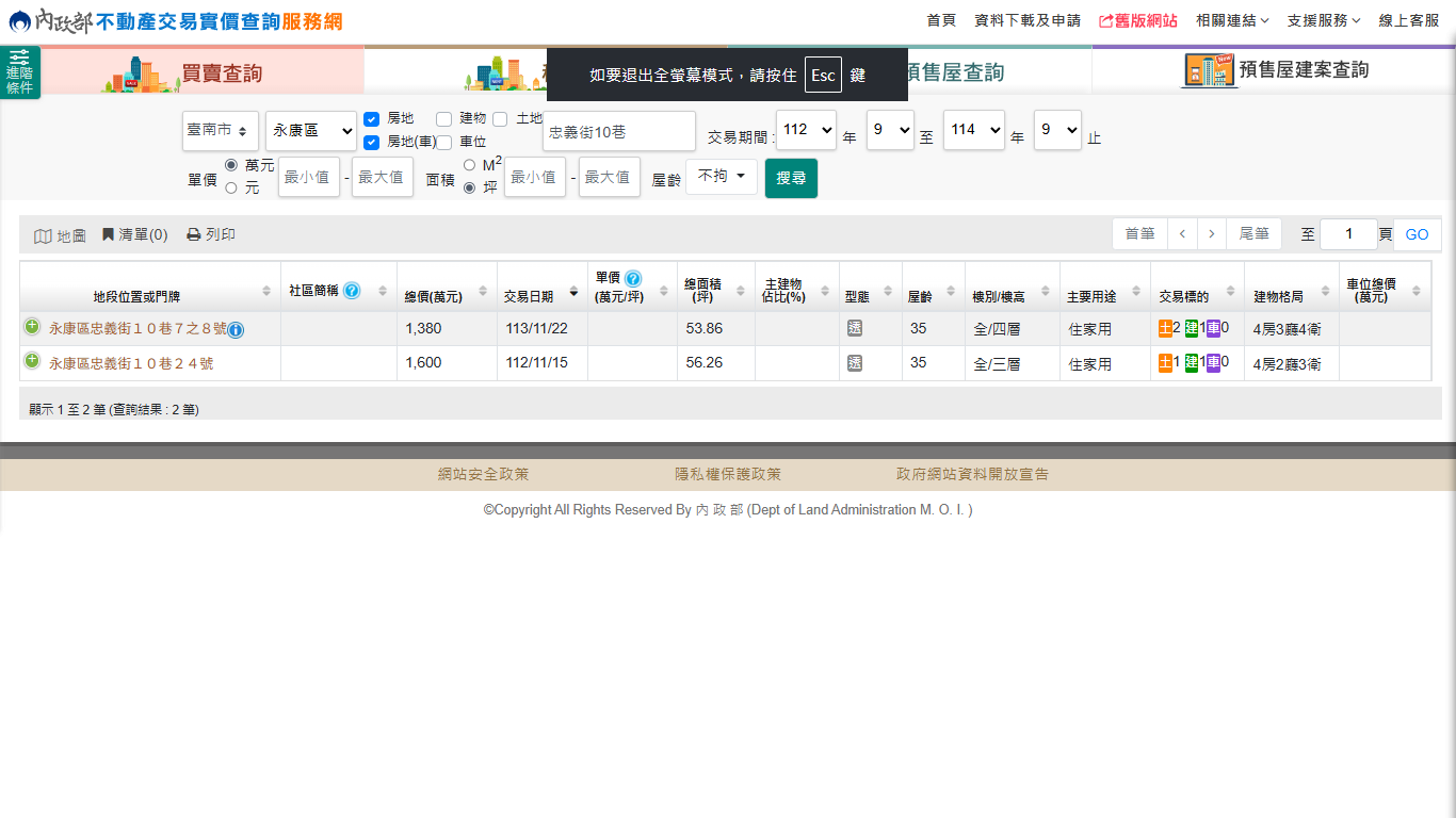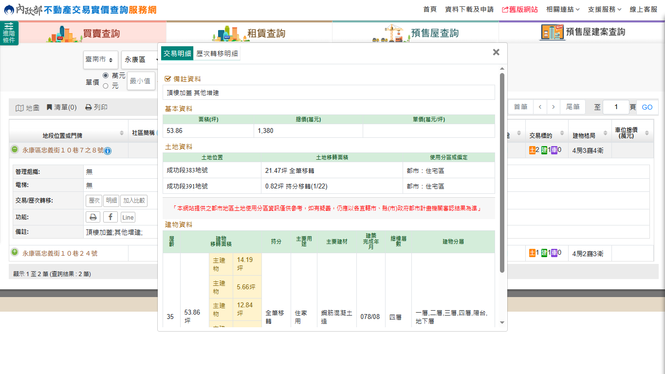 本物件兩年內上一筆實價登錄:
