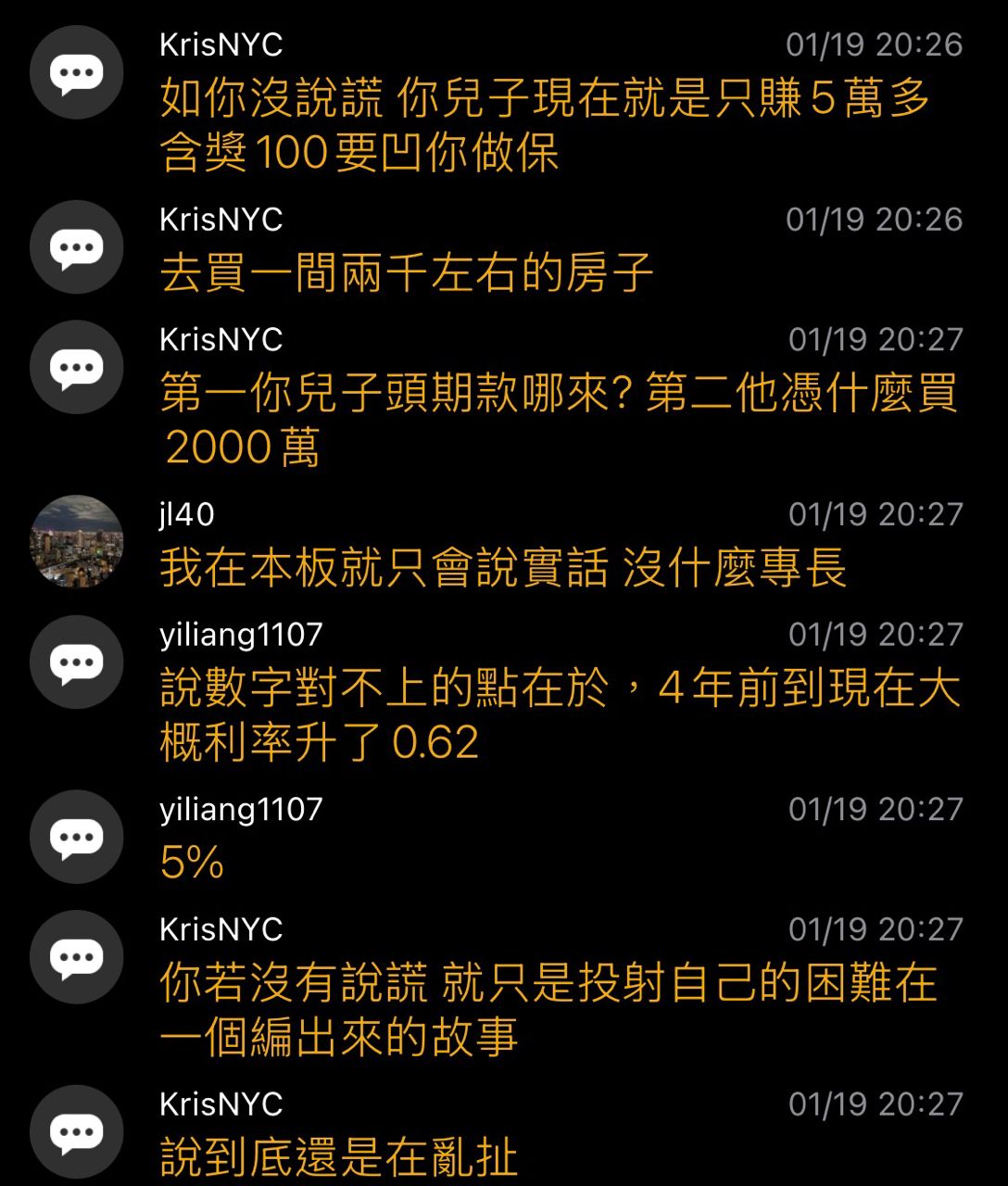 → jl40: 首先是女兒 不是兒子 我從沒說過兒子 頭期款我分二年跟我老 01/20 00:55