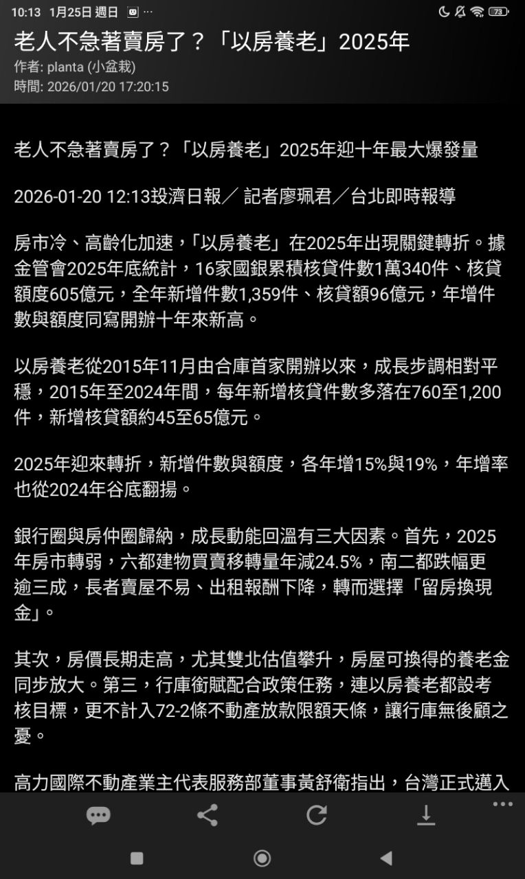 → planta: 樓上江湖在走,新聞要看!以房子養老,不但有成交2025還爆01/25 10:15