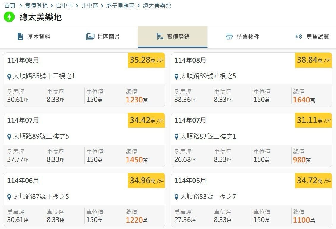 建物門牌: 臺中市北屯區太順路(總太美樂地)