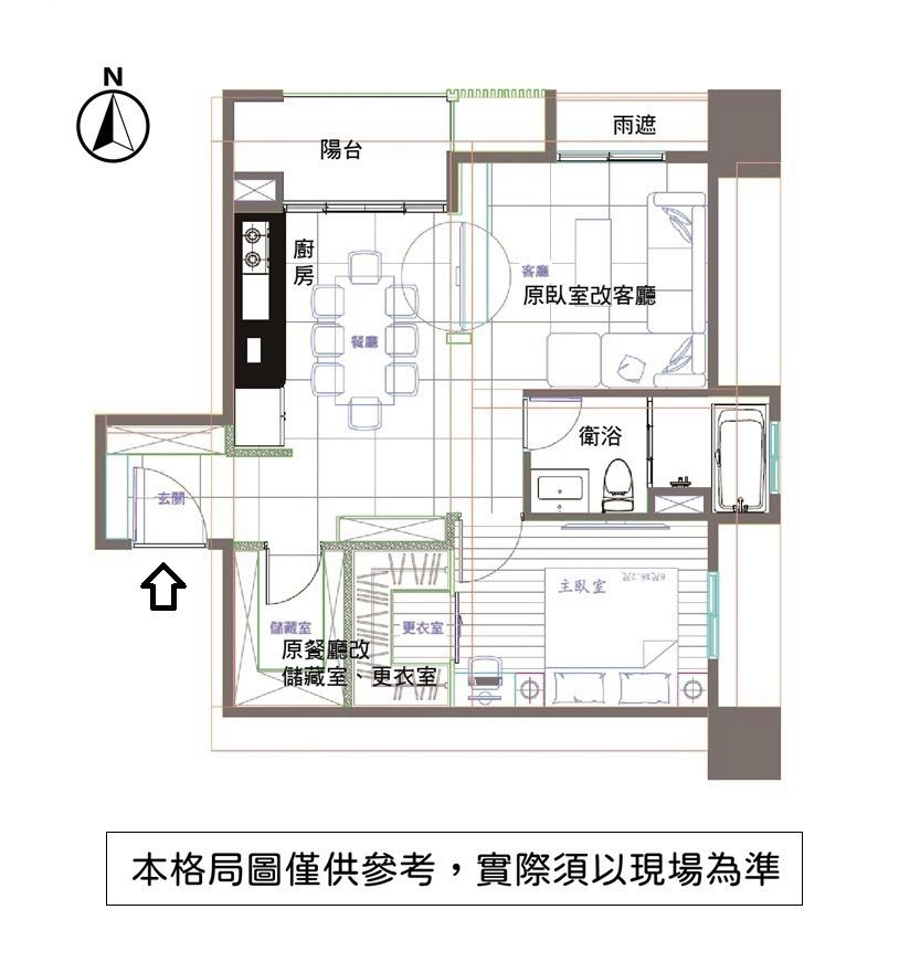 朝向 : 落地窗朝北/大門朝南