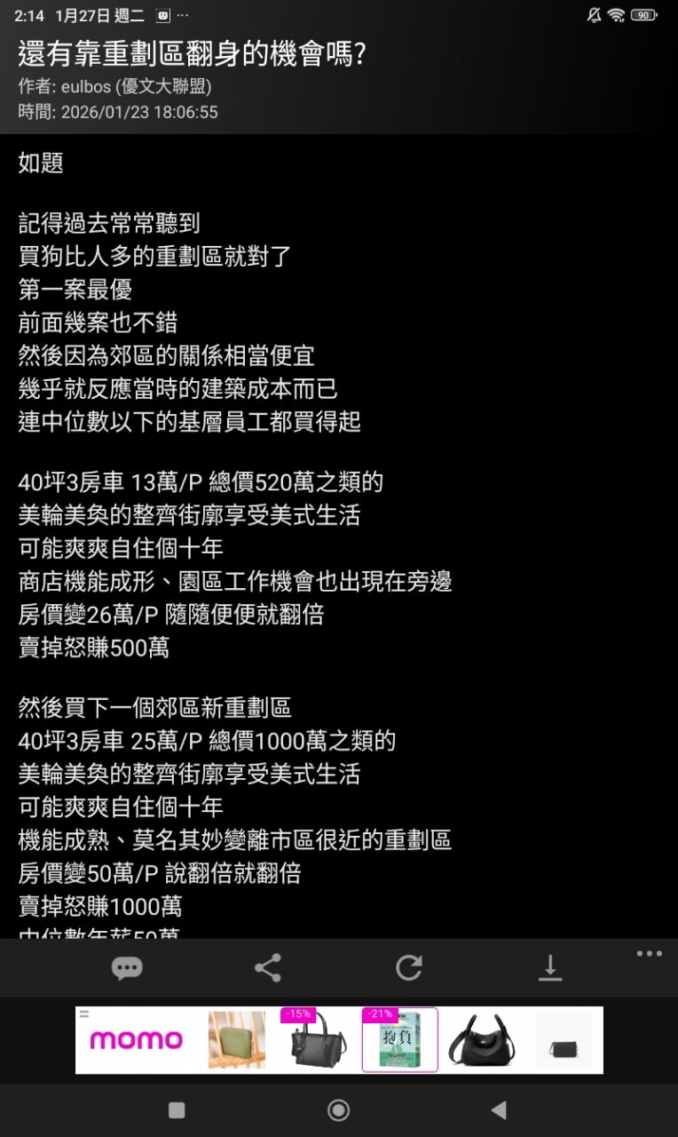 → planta: 只好買重劃區選擇比較多! 01/27 14:59