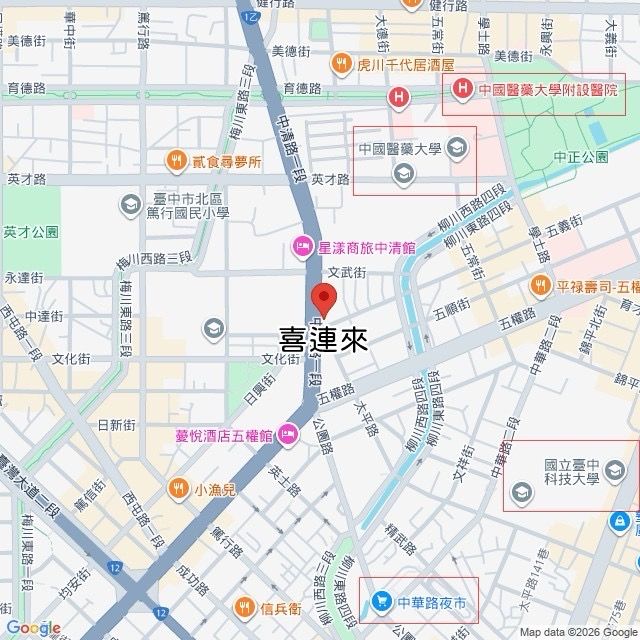 建物門牌: 臺中市北區中清路一段(喜連來)