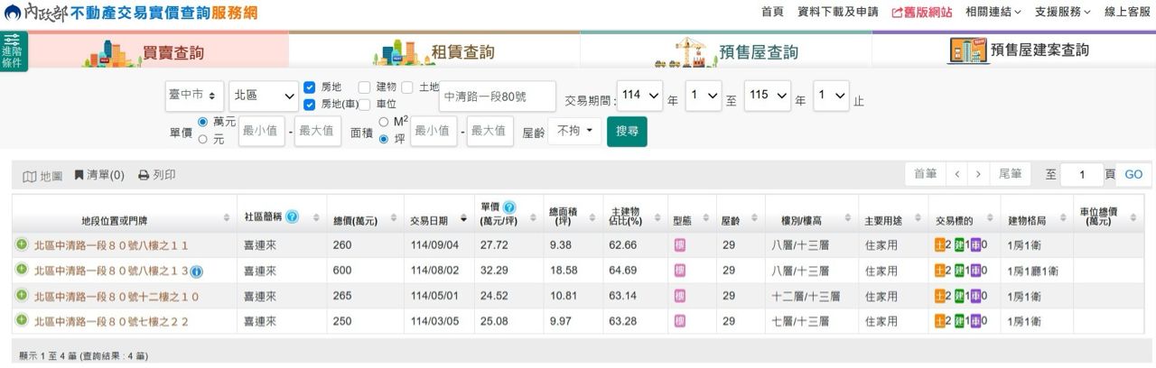 本物件附近地址實價登錄 :