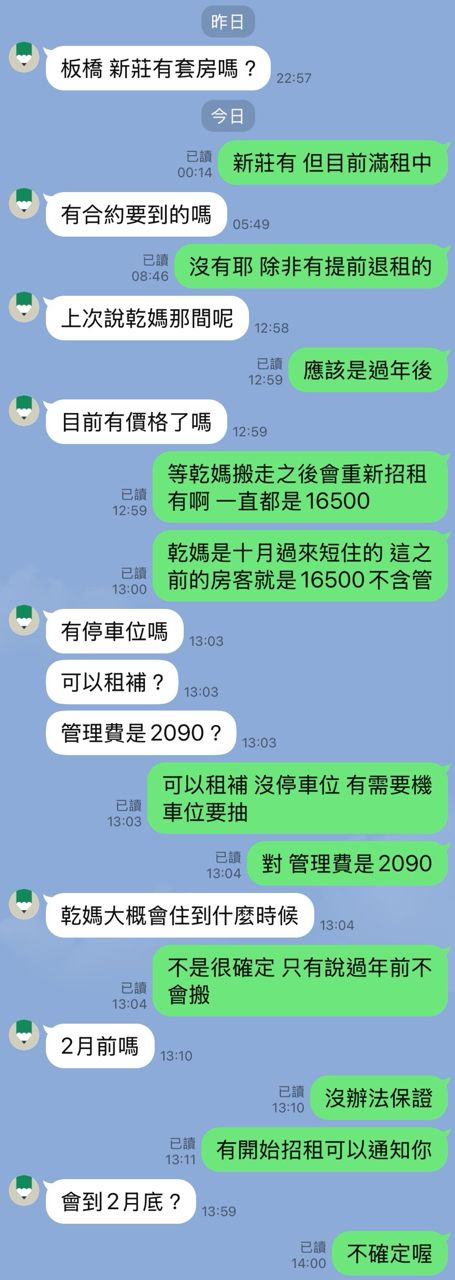 → s26492755: 我也是被騙過一次 跟我租 但偷偷當二房東 他的房客就真 01/29 16:43