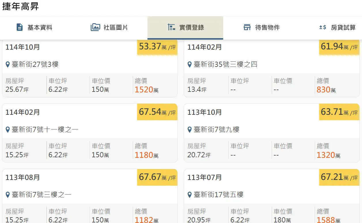 本物件附近地址實價登錄 :