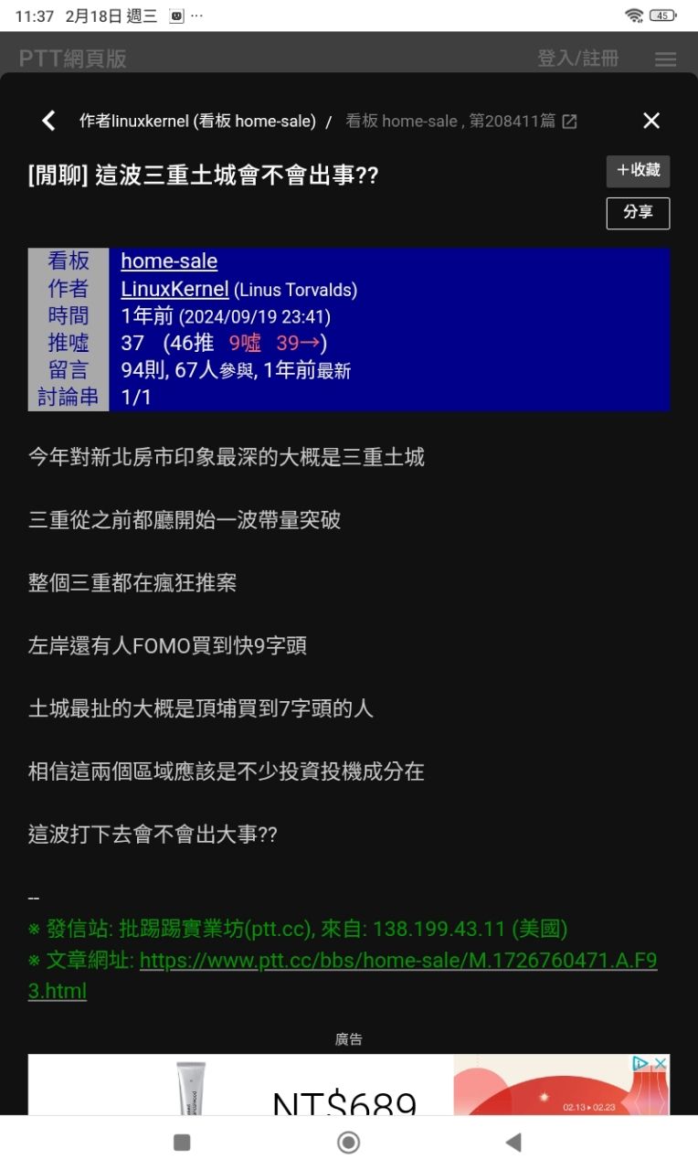 → planta: 都有人住啊,新莊有44萬人口,連下新莊都站穩75了,三重 02/18 23:59