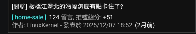 → nckueric: 見的賣掉台北房往外圍換新房),台北人大多不會想搬離 02/19 00:56