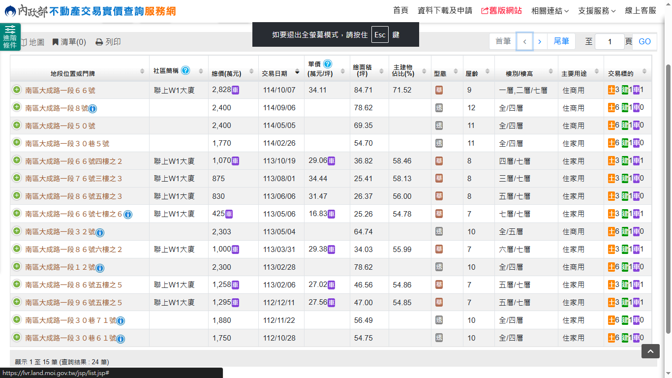本物件附近地址實價登錄 :