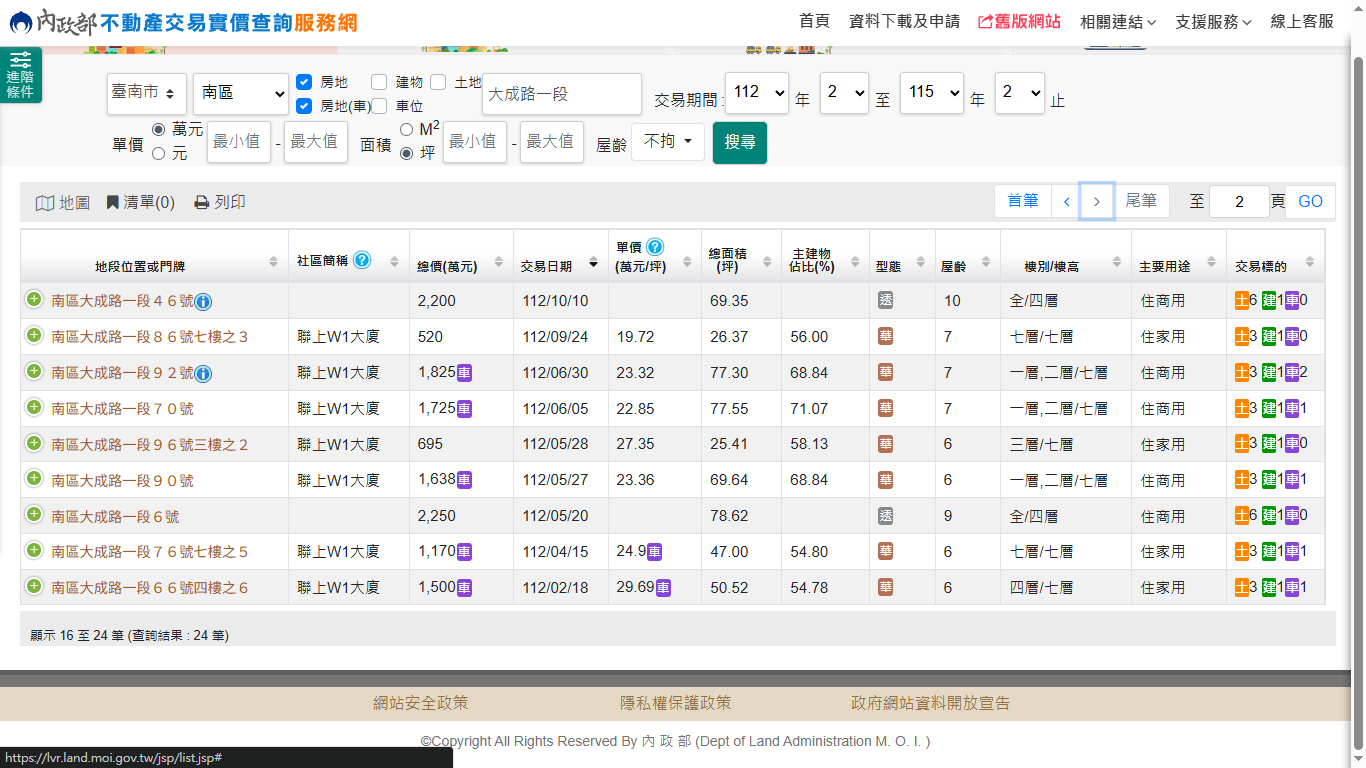 建物門牌: 台南市南區大成路一段