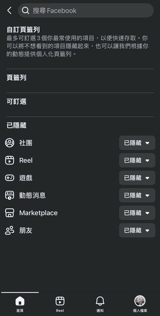請問想隱藏 Facebook 底部 Reel 按鈕