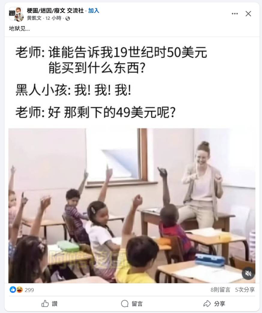: 的商品是什麼?黑人快速舉手後,一樣是老師的聲音:答對
