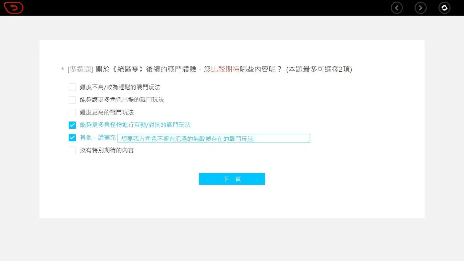 標題[絕區] 這次問卷還是填非常簡單嗎?
