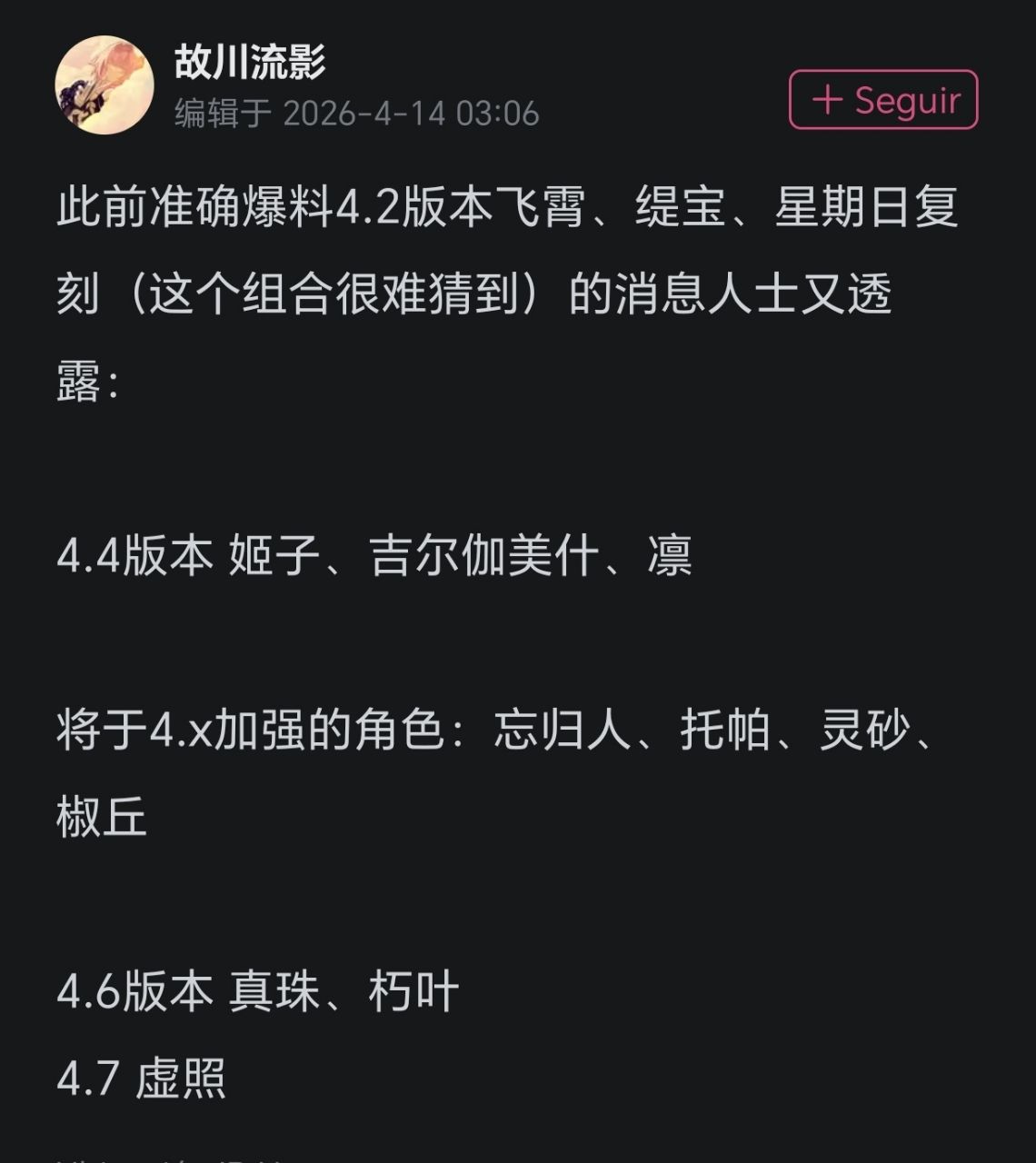 → ArthurJack: 4.4把姬子跟虛照出了,剩下3~4個版本留給其他角色 04/14 20:11