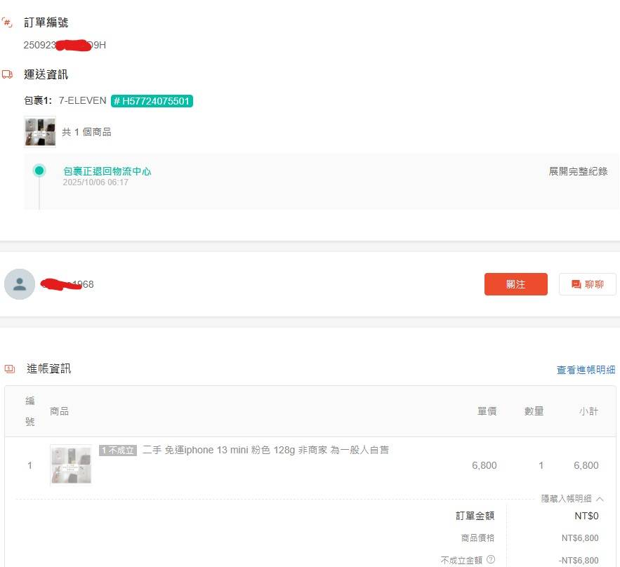 原本擺蝦皮被買走 結果買家說看錯型號不要了