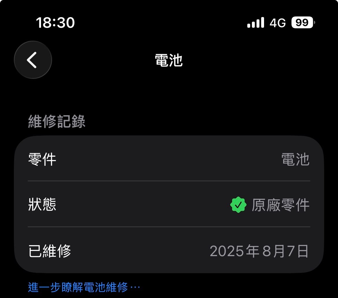 2025/8/7至蘋果A13更換原廠電池