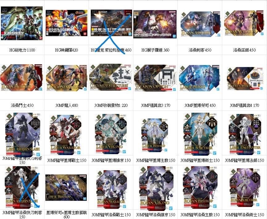 30MF配件包 2包250 3包300 4包以上每包100(劍鬥士配件不算)