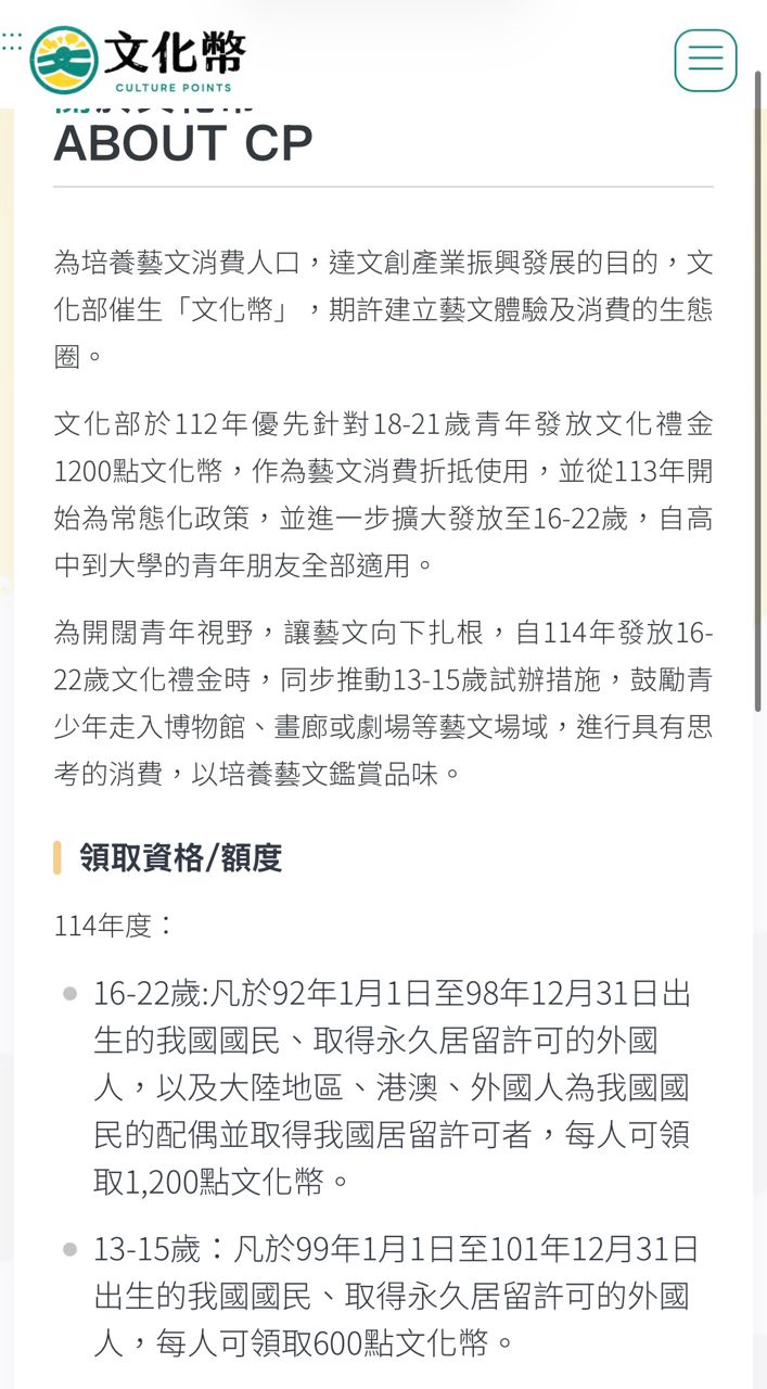 → Beandou : 大學,感覺你的年齡不太可能是文化幣領取對象耶,如 12/27 21:50