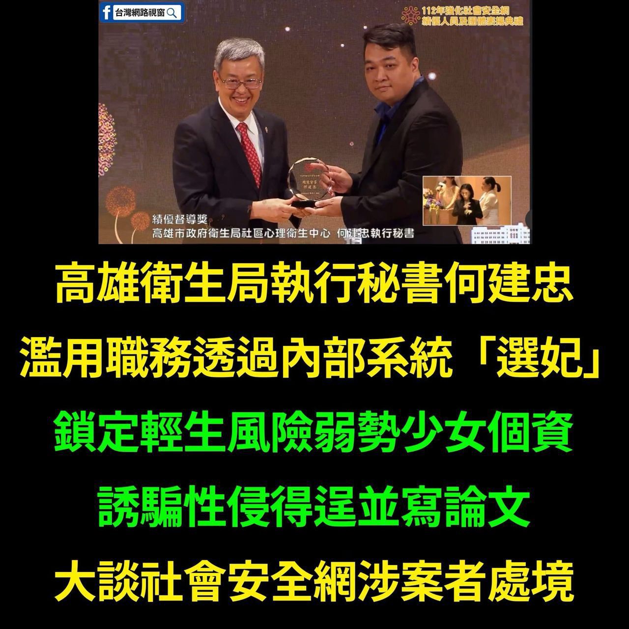 職於高雄市府,竟在案發後利用任職社會局的權限,協助洩漏少女報案進度給丈夫,讓這