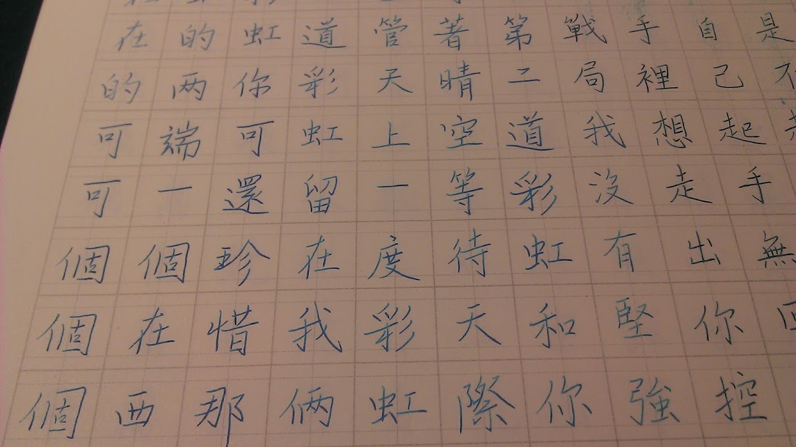 字中可以看到還滿多連筆的,後來在網路上也看了一些練字心得,